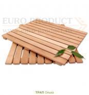 Напольный трап из ольхи черной имеет рифленую лицевую сторону, что предотвращает скольжение на влажной поверхности.