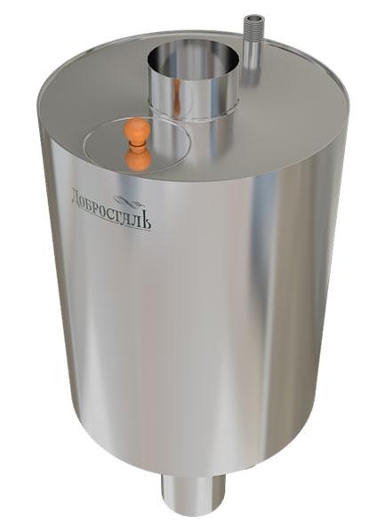 Баки цилиндрической формы - имеют повышенную надежность и более продолжительный срок службы, превышающий аналоги других производителей, т.к. имеют толщину 1,5 мм самой термонагруженной части конструкции – дымоходной трубы. Баки изготовлены из высоколегированной стали с содержанием хрома более 13 %. Сталь имеет хорошие антикоррозионные свойства. При изготовлении применяется технология пассивации сварных швов. Эта технология обеспечивает коррозионную стойкость швов и безупречный товарный вид. Изделия имеют широкую горловину для наполнения водой и для внутренней очистки. Баки для воды объемом 70 литров «самоварного» типа разработаны специально для печей серии «Императрица». Они имеют двойное назначение – для быстрого нагрева воды и для подачи воды в систему парогенерации печи. Для этого предусмотрены два выходных и один входной резьбовых ниппеля размером ¾ дюйма.