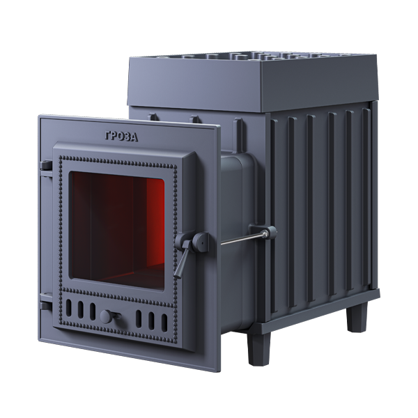 Чугунные банные печи ТМ «Гроза» — это современные печи, рассчитанные на малые и средние размеры парных. Печь имеет прочную сборную конструкцию, без резьбовых и сварных соединений, детали выполнены из легированного чугуна. Топка печей «Гроза» состоит из двух камер, разделенных пламегасителем. Радиаторные выступы каменки, направленные вглубь топки, увеличивают площадь контакта огня с каменкой и эффективность теплосъема. Для увеличения площади поверхности нагрева камней каменка снаружи оборудована чугунными шипами, направленными вверх. Между шипами укладываются банные камни или дополнительные чугунные заклады, такие как ядра и чугунные шишки. Сами чугунные шипы также являются частью заряда для лучшего испарения воды