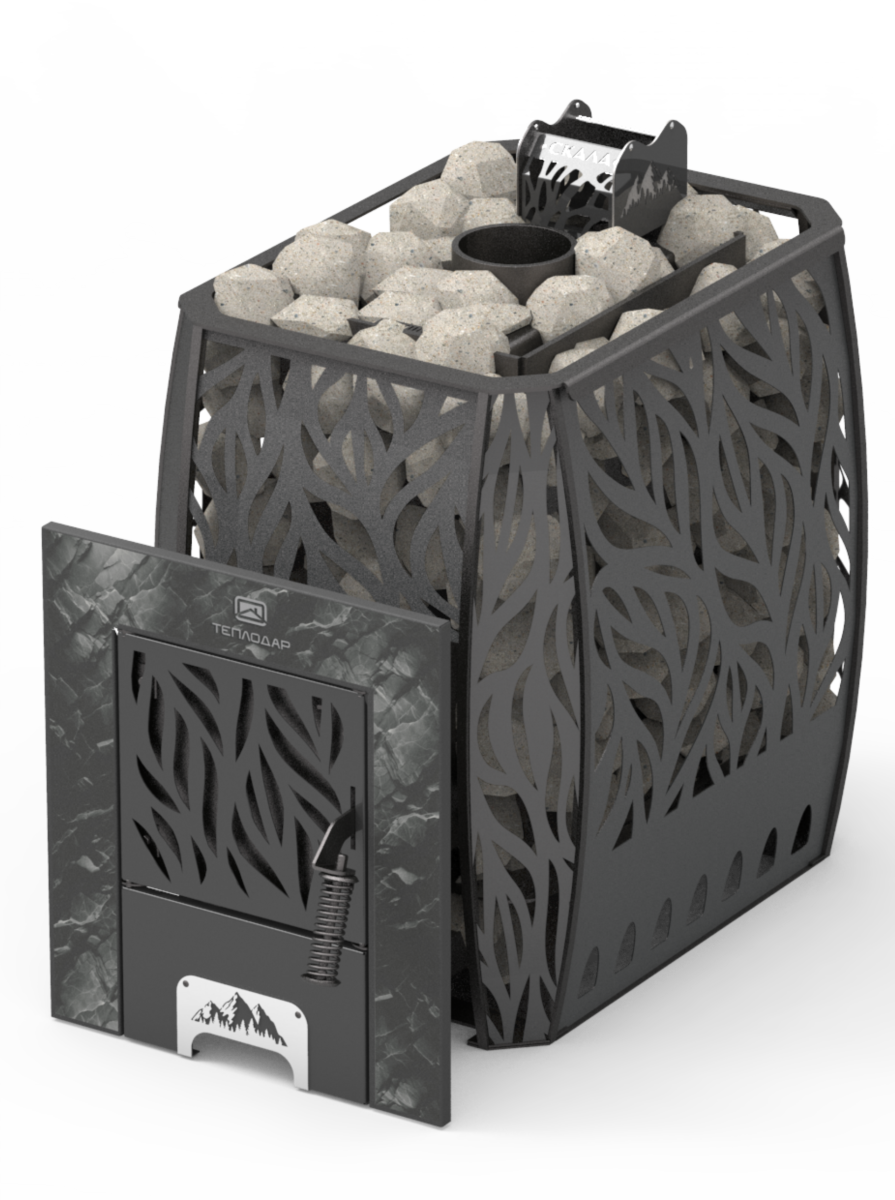 Печь рассчитана на внушительную массу камней: до 90 кг в сетке и до 15 кг во внутренней каменке. Большая закладка дает более мягкий и насыщенный пар, сохраняет тепло дольше и обеспечивает стабильный комфорт в парной.