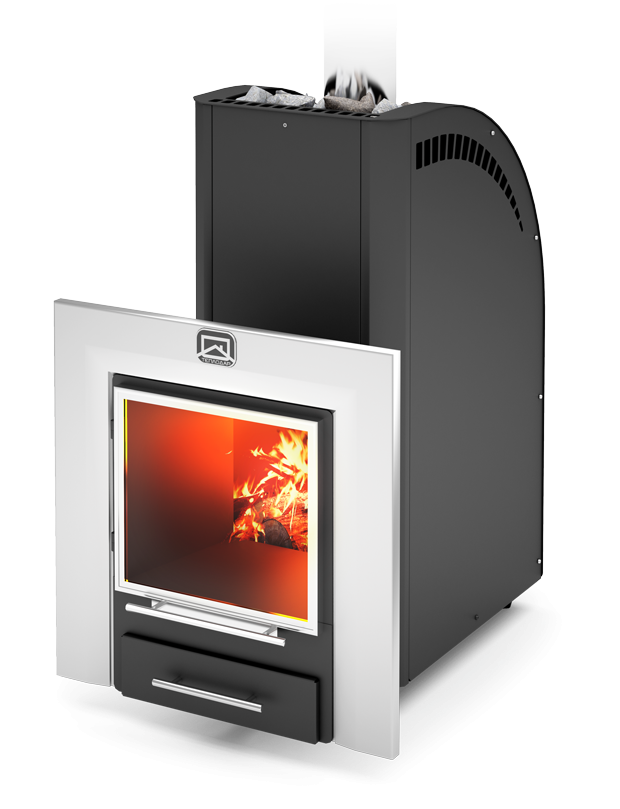 Л – топка печи выполнена из высоколегированной стали с содержанием хрома до 13%. Термически нагруженные элементы печей для бани изготавливаются из стали с содержанием хрома до 17%. Кожух–конвектор печи окрашен кремнийорганической термостойкой эмалью. П – печи оборудованы встроенным парообразователем (патент №2352865) для получения пара с раскалённых стенок топки печи. Панорама – печи с индексом панорама оборудованы топливным каналом с широкой панорамной дверцей с жаростойким стеклом.