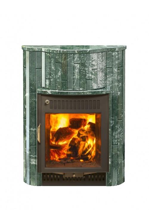 Для того, чтобы печь для бани, с дверкой в стиле камина, гармонично сочеталась с интерьером, можно использовать портал из камня, в стиле Ламель.