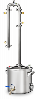 Бак аппарата, как и все его элементы, сделаны из жаропрочной стали марки AISI 304/430 устойчивой к ржавчине и механическим деформациям. Перегонный куб оснащен всем необходимым для комфортного и безопасного использования: